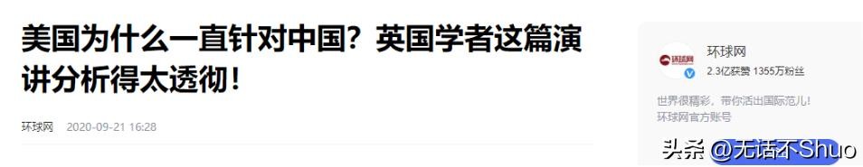 信息来源于环球网2020年9月21日关于美国为什么一直针对中国?英国学者这篇演讲分析得太透彻了!