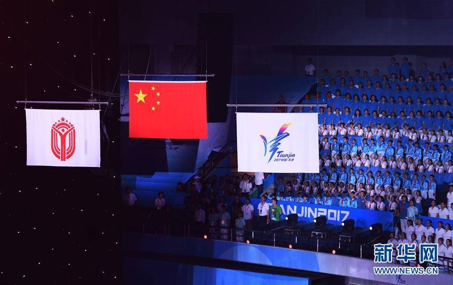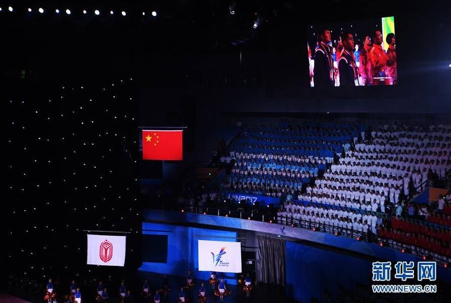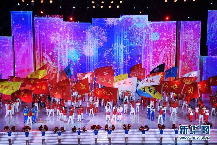 9月8日,中华人民共和国第十三届运动会闭幕式在天津举行。这是各体育代表团运动员代表在闭幕式上挥舞旗帜。新华社记者牟宇摄
