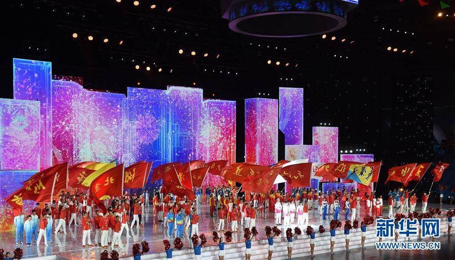 9月8日,中华人民共和国第十三届运动会闭幕式在天津举行。这是各体育代表团运动员代表入场。新华社记者李博摄