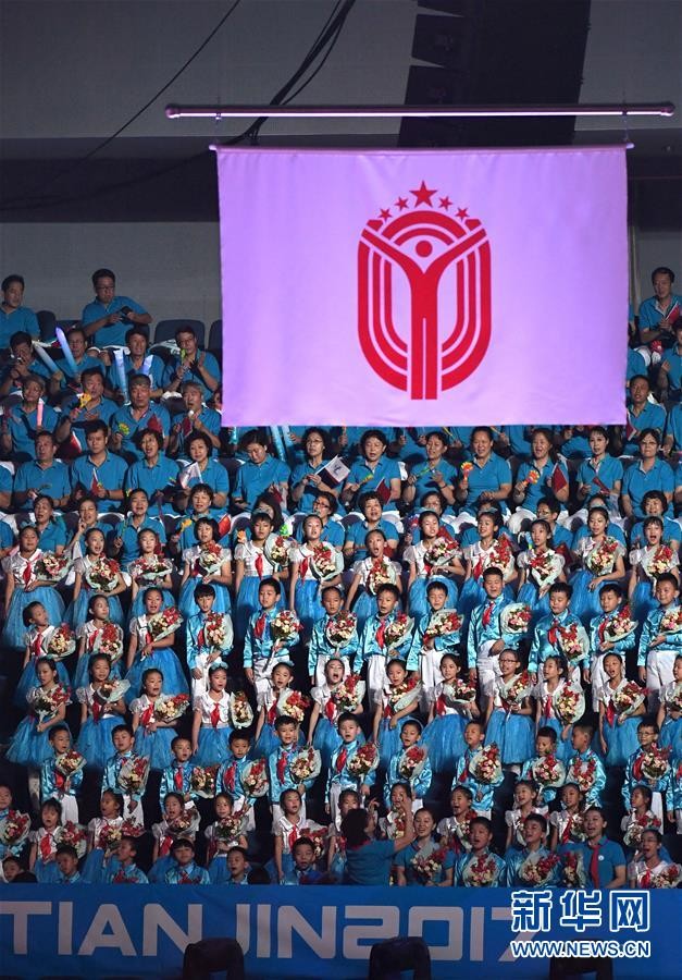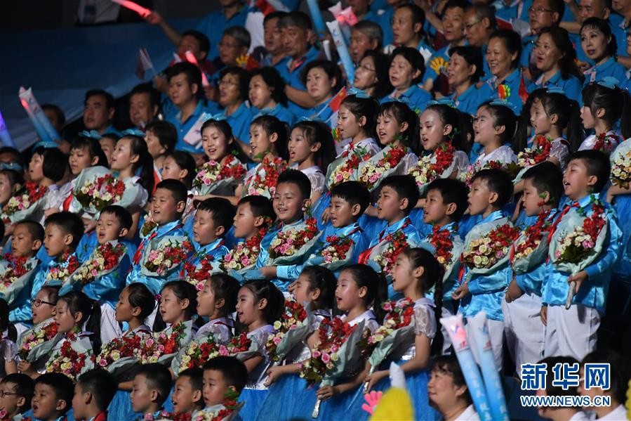 9月8日,小演员们在闭幕式前进行暖场合唱表演。当日,第十三届全运会闭幕式在天津举行。新华社记者陈斌摄