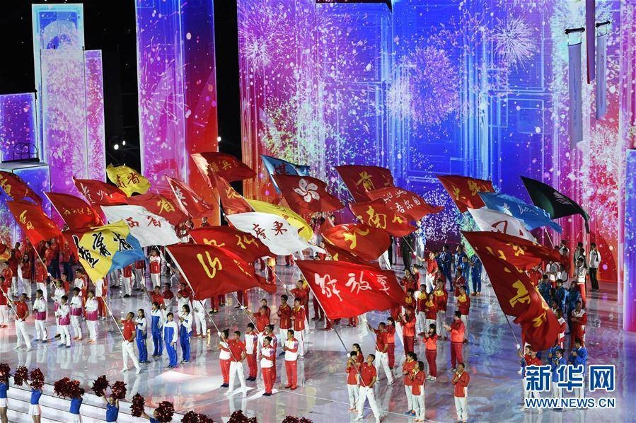 9月8日,中华人民共和国第十三届运动会闭幕式在天津举行。这是各体育代表团运动员代表入场。新华社记者连振摄