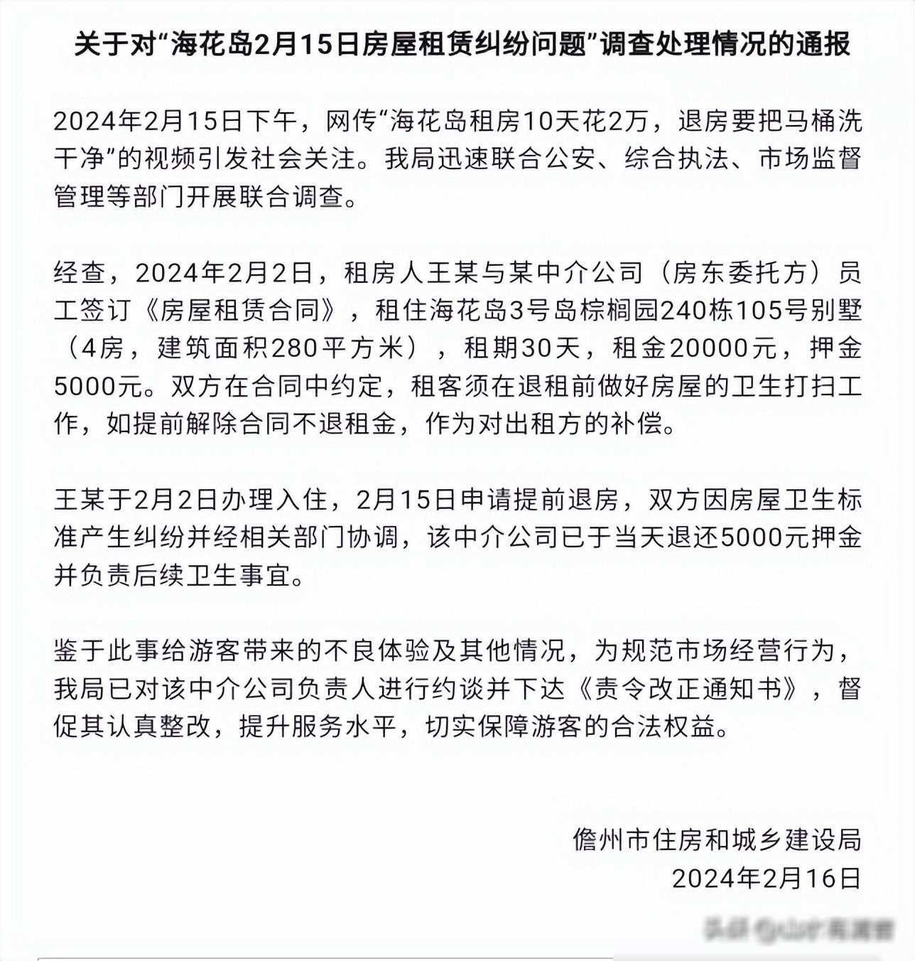 热议纷纷的海花岛退房事件终于有了后续!官方公布了详尽的调查结