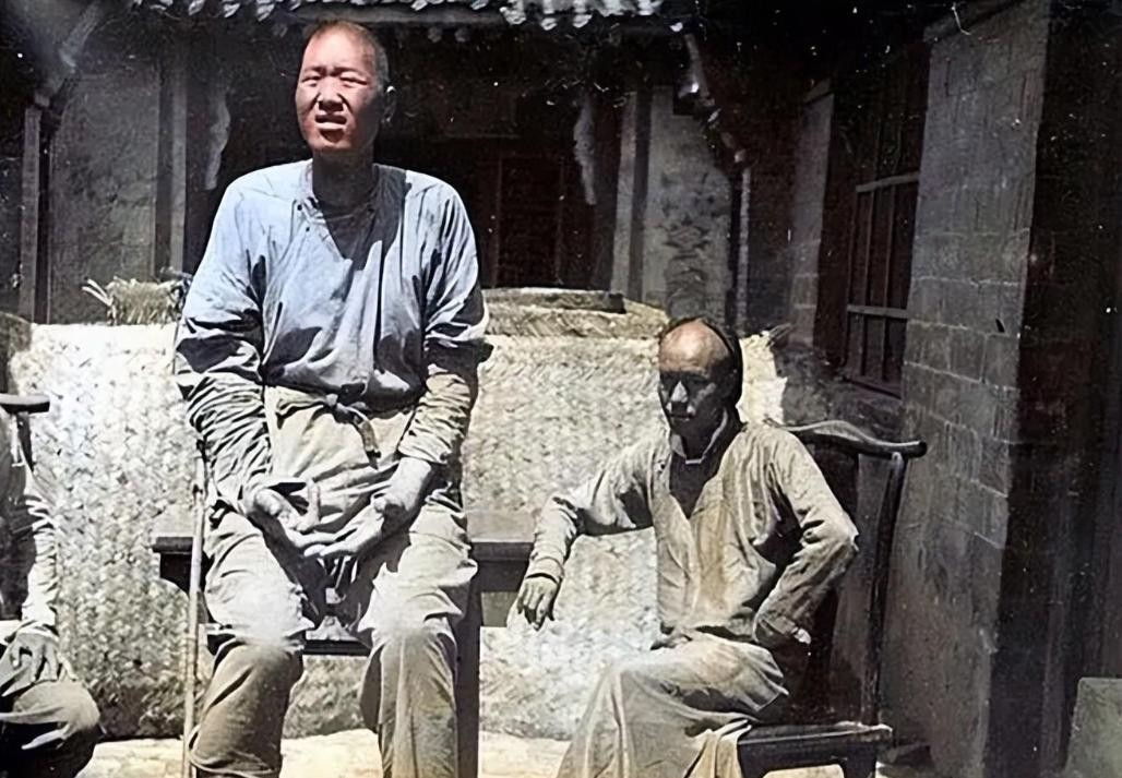 晚清时期的一个巨人此时坐在他旁边的是一个普通的清朝男子,看得出他块头非常大