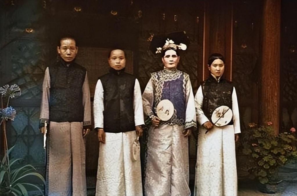 清朝格格和她的几个侍女,这样的妆容看上去简直是个另类