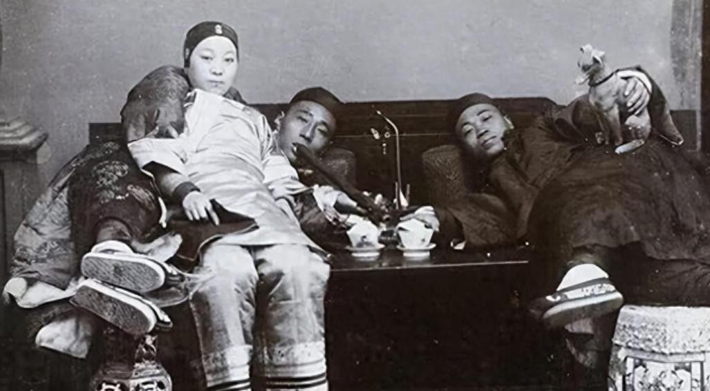 晚清时期的一群男子此时正聚集在一处角落抽着大烟,看起来不人不鬼