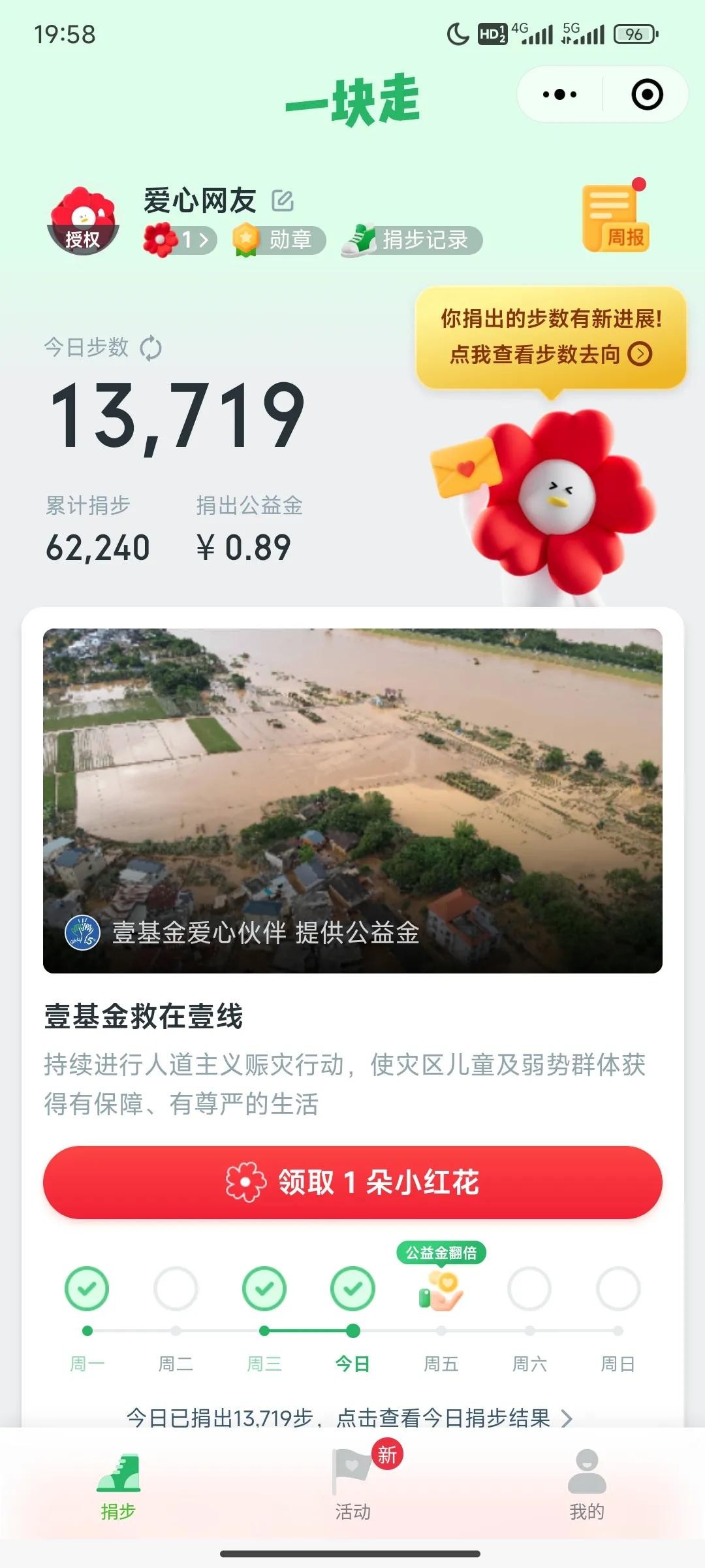 完成以上步骤,捐赠步数献爱心,有一种成就感。