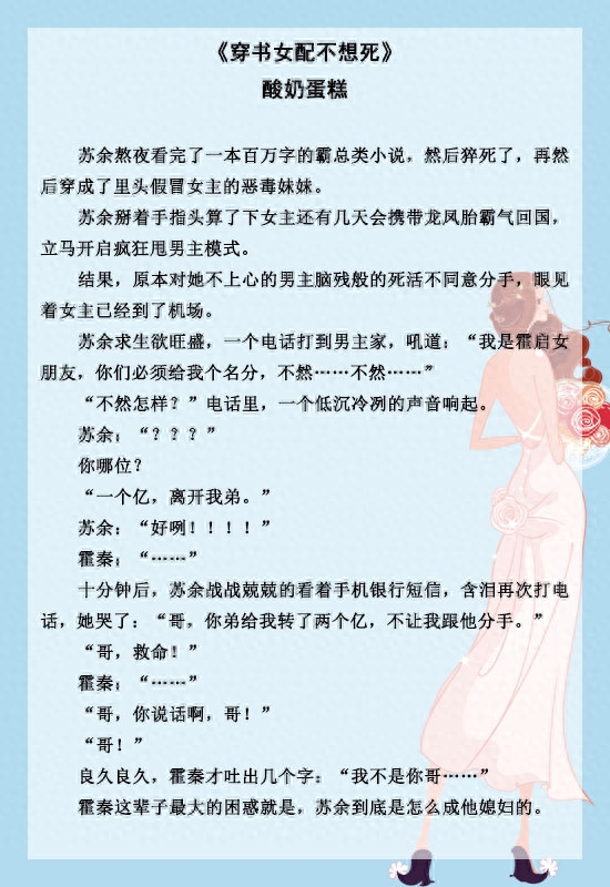 《穿书女配不想死》《穿成反派霸总的娇气包》《穿成男配“女友”后》《说好的万年女配呢》《穿成男配的小仙妻》