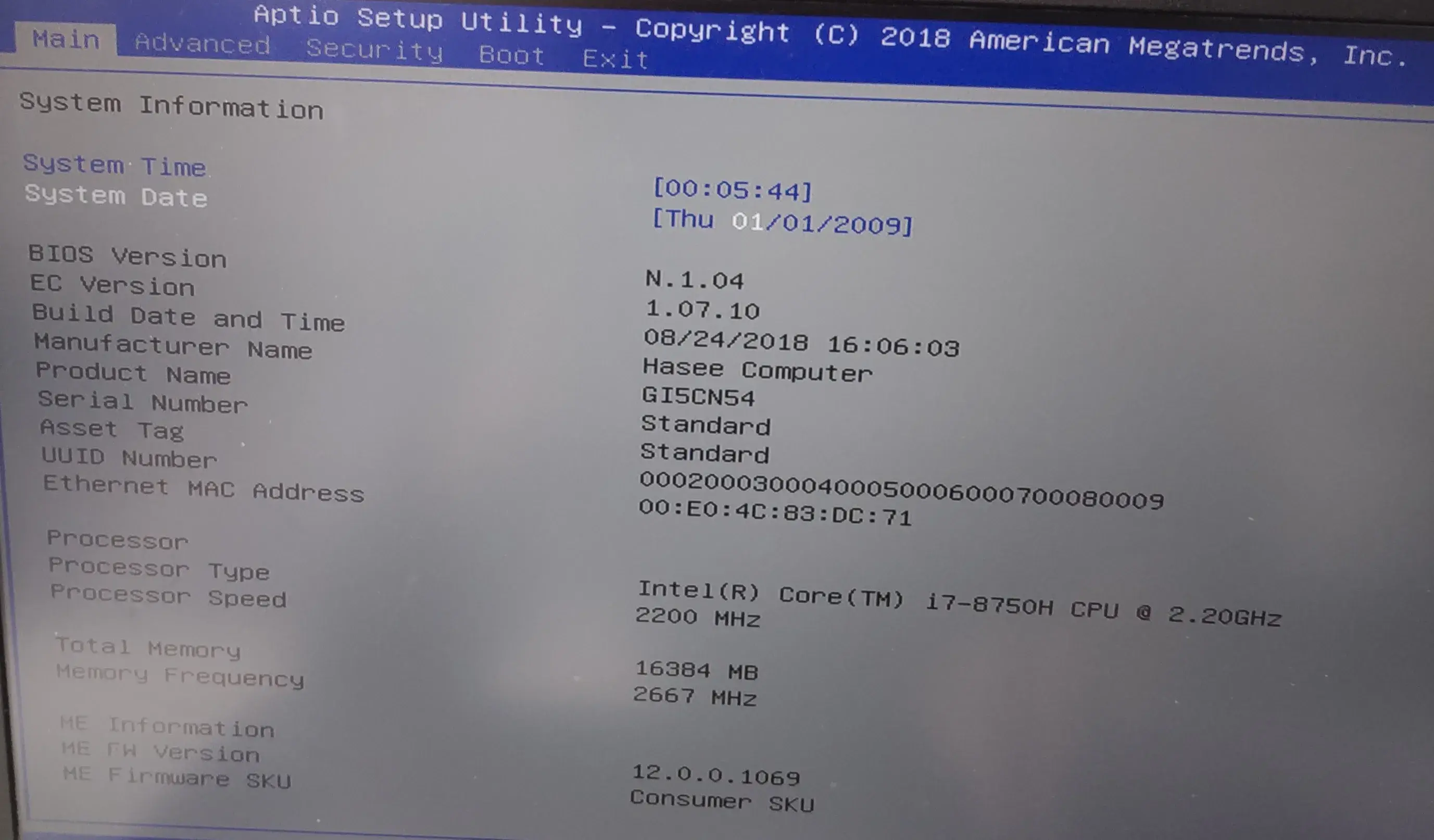 ME Fw Version: 管理引擎版本(ME:Management Engine)