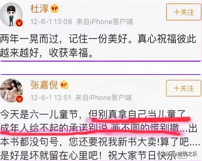 但几年之后,张嘉倪的一条发文却引起了网友的关注。她在儿童节当天发了一条内涵的文案,并且表示:给不起的承诺就不要给,圆不了的谎不要撒。