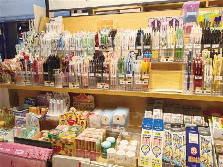 “提前半个月,我们便备好了货。开学前一周和后几天生意最好。报到前后,学生集中购买书皮、笔、本子,后面则是添置缺少的学习用品。”文具店店员介绍说,开学季店里顾客以亲子家庭为主,各种本子、塑料书皮、钢笔、中性笔卖得尤其好;除了书写工具外,高年级的学生买得多的是各种格式组合的笔记本,方便他们更好地记课堂笔记、纠正错题;低年龄段的孩子购买彩笔、彩色黏土、贴纸等辅助文具比较多。