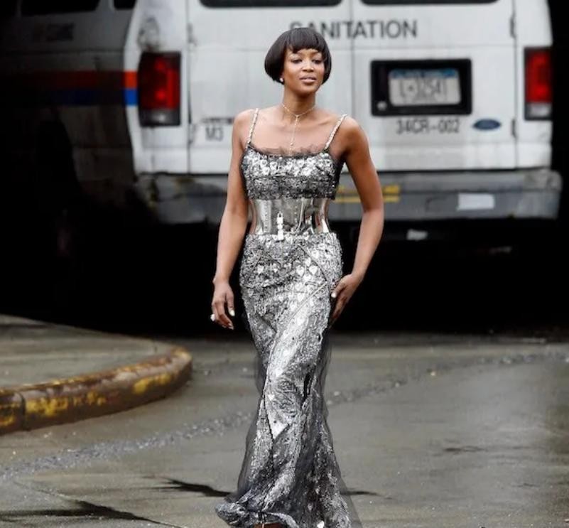 1995年Met Gala上Naomi 这套经典的闪钻裙 那个时期老米被Versace赏识,经常出现在范思哲片场和广告,宛如一条会发光的美人鱼。