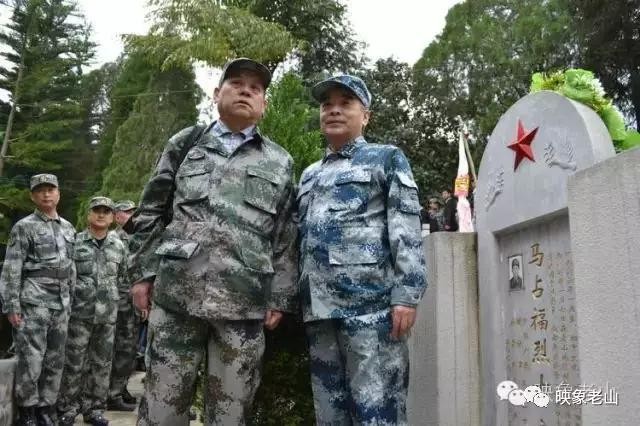 刘亚苏少将(左)与刘亚洲上将祭奠在这次战斗中牺牲的马占福烈士