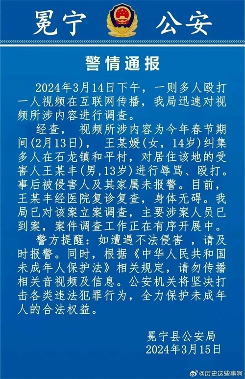 面对霸凌事件,视频中被殴打的男孩及其家人并没有选择报警,这件事其实已经是2月13日的事情,却在3月15日被人所知,如果没有知情人透露视频,那么,被殴打的男孩很可能后续还会被打。