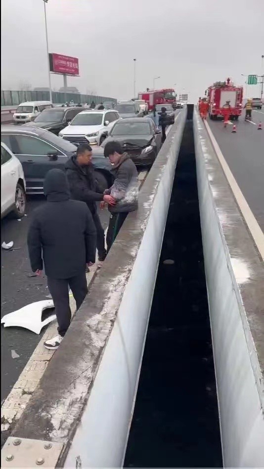 目击者回忆,事发时道路上车流量很大,结冰导致路面特别湿滑。因高速路上行驶的汽车车速本就很快,高速撞上车速过慢或者停车的车辆,瞬间掀起一串连环追尾。