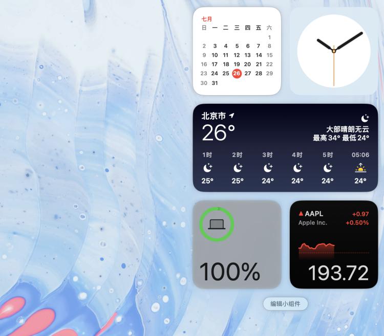 注意,当我们将 iPhone 和 Mac 连接到同一网络后,小组件菜单将会出现不一样的变化,那就是手机上的小组件也会出现在 Mac 当中。