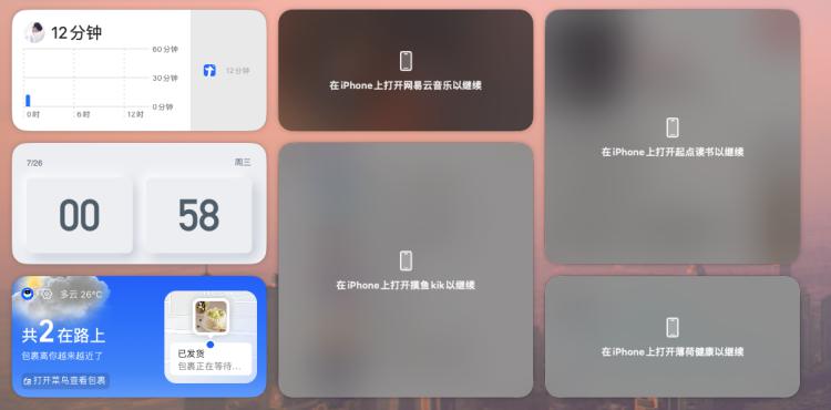 至于像音乐小组件,表现就比较差了,切换歌曲之后很长时间都没有同步到 Mac 当中,过后好久才同步完成。因此可见,小组件不适合实时性的内容,只适合重要信息显示。