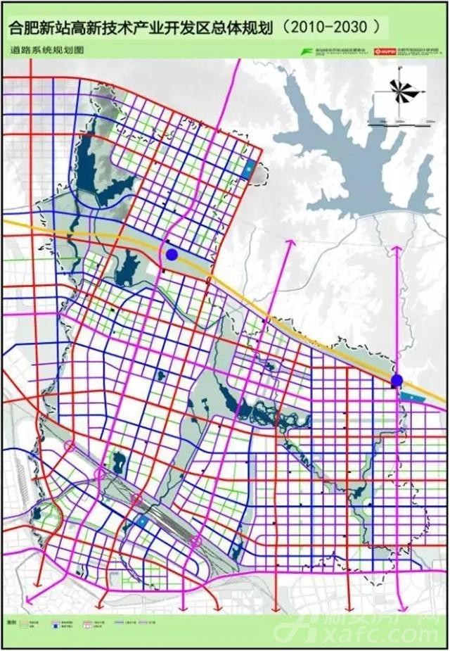道路将规划快速路形成“两横三纵”;城市主干路网将新站区各功能片区串接起来,形成“八横五纵”。并且道路将与合肥新桥机场等相连接,在新站建设航空港,发挥空港物流集散作用。新站区内部及周边现状有合六叶高速公路、合徐高速公路,交汇于牌坊乡,规划在桥头集路增设一个合六叶高速公路下道口。新站区将有4条轨道交通线路,分别是1、3、4、5号线。新站区规划通过京福高铁、商杭高铁、合肥站、合肥新高铁站建成城际铁路,以达到与长三角地区更快衔接的目的。未来,新站区将无缝衔接起快速路、高架桥、高速、轨道交通等交通方式,形成区域一体、快速便捷的立体交通网络体系。
