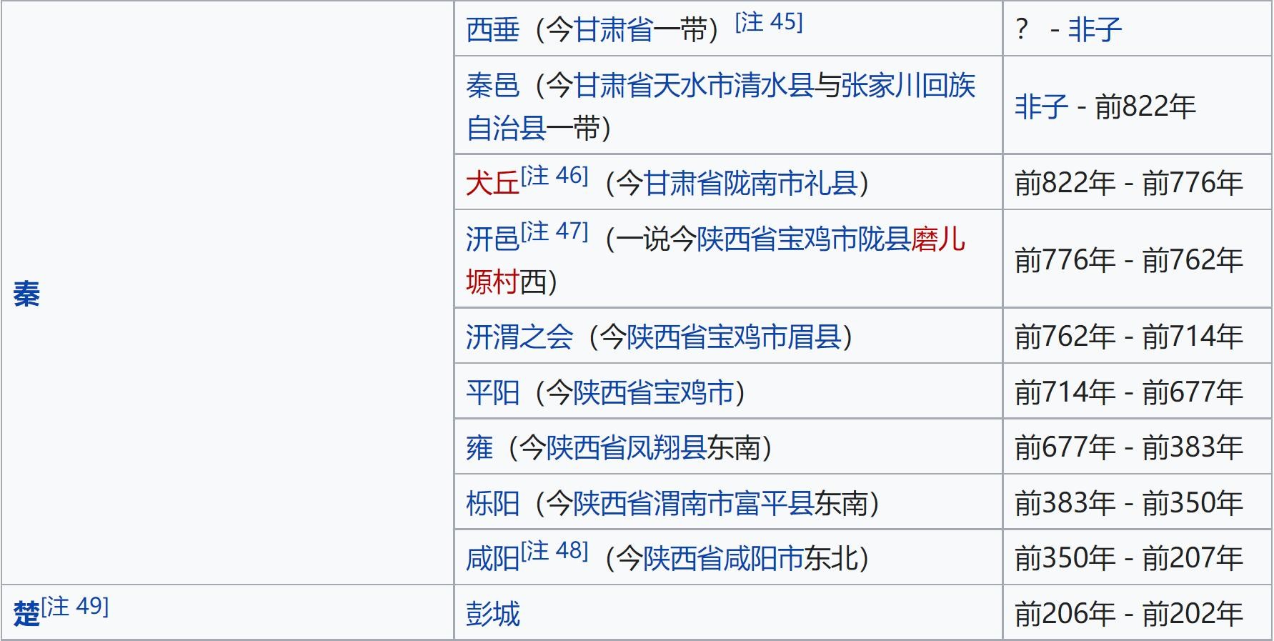 秦国从最早的西垂一直历经甘肃到陕西,最终定于咸阳。