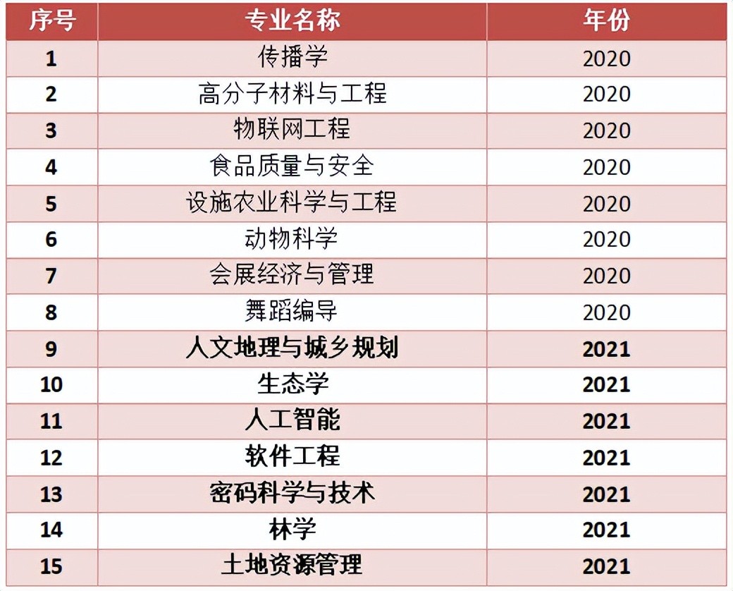 (加粗为2021年度最新获批专业)