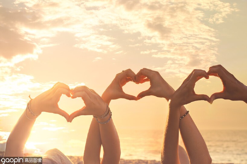 三五好友结伴在海边游玩时,两个人用手臂比出心形的形状。倘若刚好遇到日出或日落,将太阳圈在心形之中,比心的人也会因为逆光在图片中变成剪影。