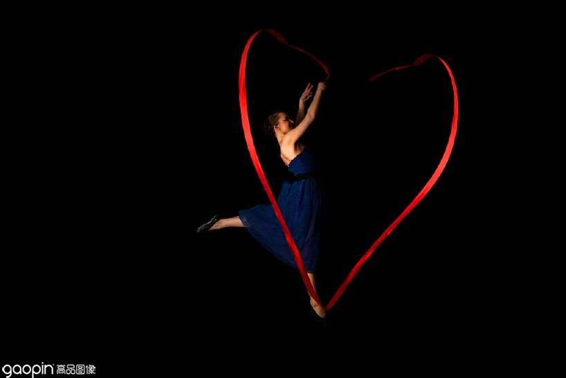 最后一个对大部分人来说是一个高难度的比心动作,借助丝带完成比心。图中的一名舞者挥舞着红丝带,在空中跳跃的时候用丝带挥舞出心的形状。