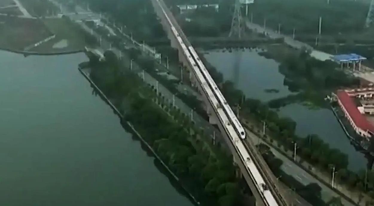 图为丹昆特大桥上两辆高铁会车