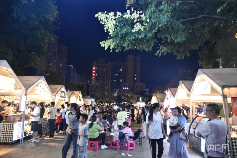 在马岭河夜间文化和旅游消费集聚区,人们一起聊天、共享美食(央广网见习记者 杨贇 摄)