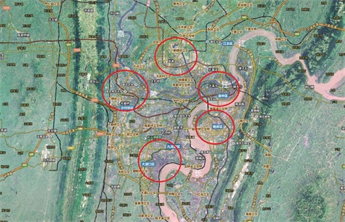 因此,多核心组团状城市多出现在地形相对崎岖的山地地区,此类形态最著名的代表就是山城重庆市。重庆位于我国西南地区,地处长江上游,重庆北部为大巴山、东部为巫山、南部为大娄山,东南部为武陵山,山地面积占了全市总面积的76%。从地形条件来看,重庆实在不是城市建设的首选,但是重庆位于嘉陵江和长江的交汇处,水运交通十分便利,河流交汇处的地理位置促成了重庆的发展,随着重庆规模越来越大,多核心组团状的城市布局更加明显,形成了渝中组团、大渡口组团、沙坪坝组团等多个组团。