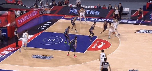 第三节比赛时,周鹏带球杀奔篮下,在同莫兰德对抗的过程里,狠狠的摔倒在地上,裁判判罚莫兰德犯规,随后周鹏也被搀扶下场。