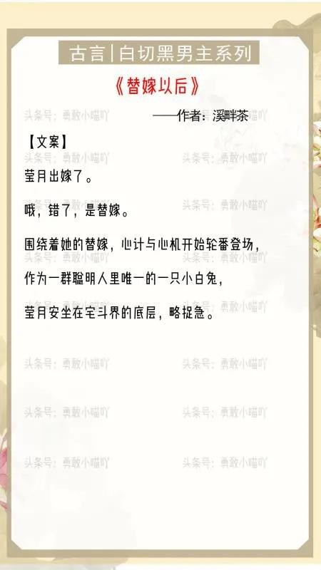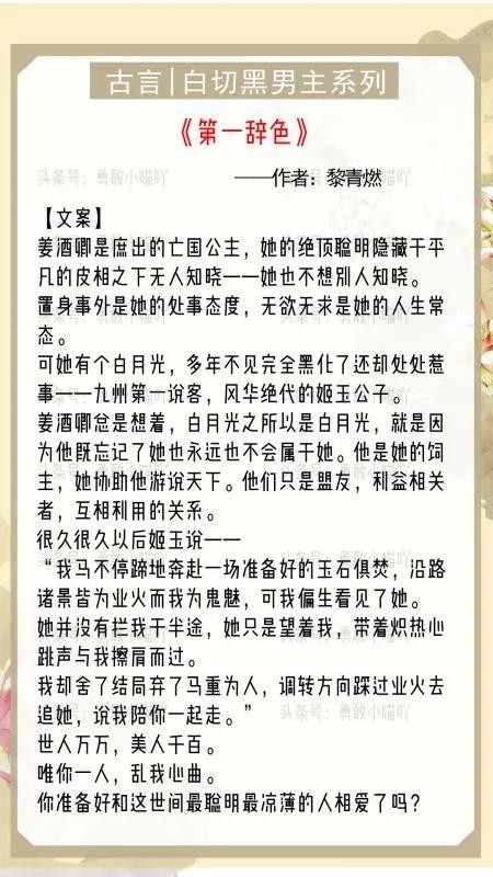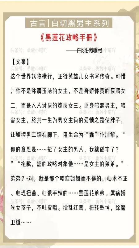 整理了六本白切黑男主系列的古言合集,推荐给爱看书的友友们,喜欢这个系列的小可爱们记得收藏吖!