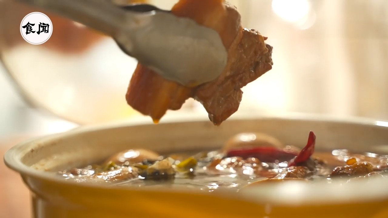 16、一个小时过去了,鲜嫩的焢肉就可以起锅了;
