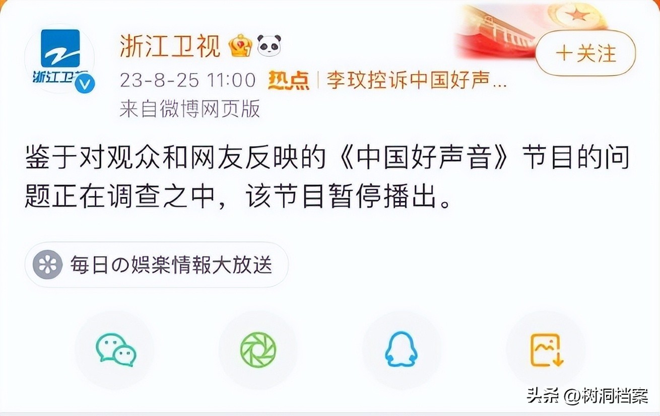 紧接着,近日《中国好声音》暂停播出的通知一经发出就稳居热搜前十,网友纷纷评论:“彻查浙江卫视”,