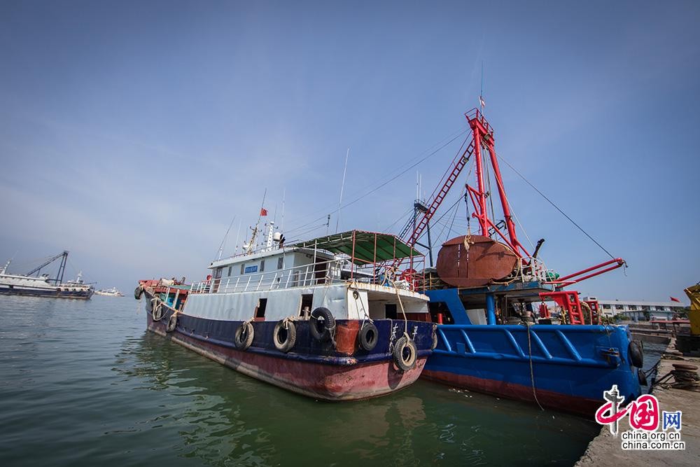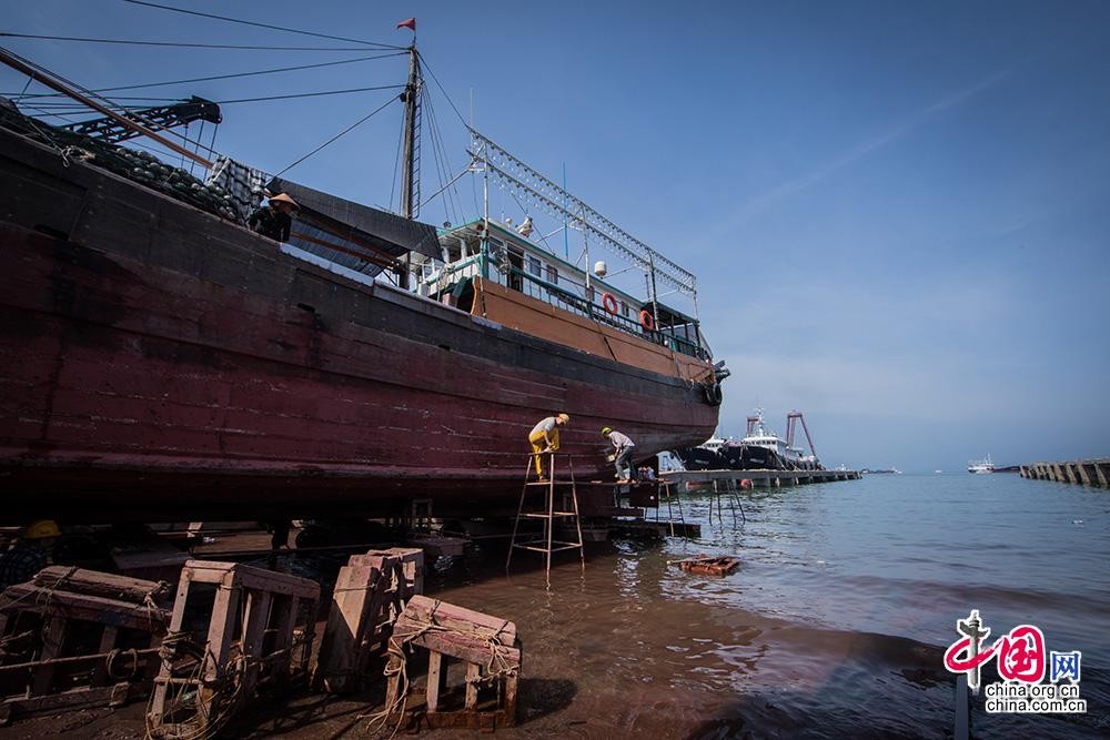 7月,正值休渔期,闸坡国家中心渔港渔民对船只进行维修保养、重新上漆、设备检查以及补网等工作。 中国网记者 伦晓璇 摄