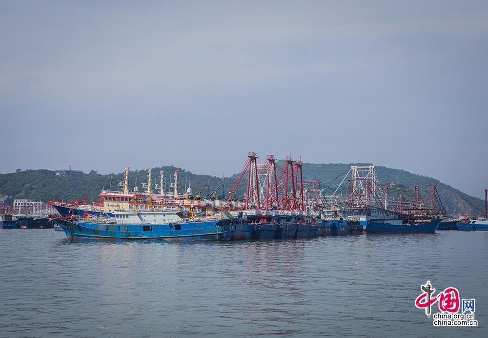 俯瞰海陵岛闸坡国家中心渔港,港区三面环山,港池宽阔。中国网记者 伦晓璇 摄