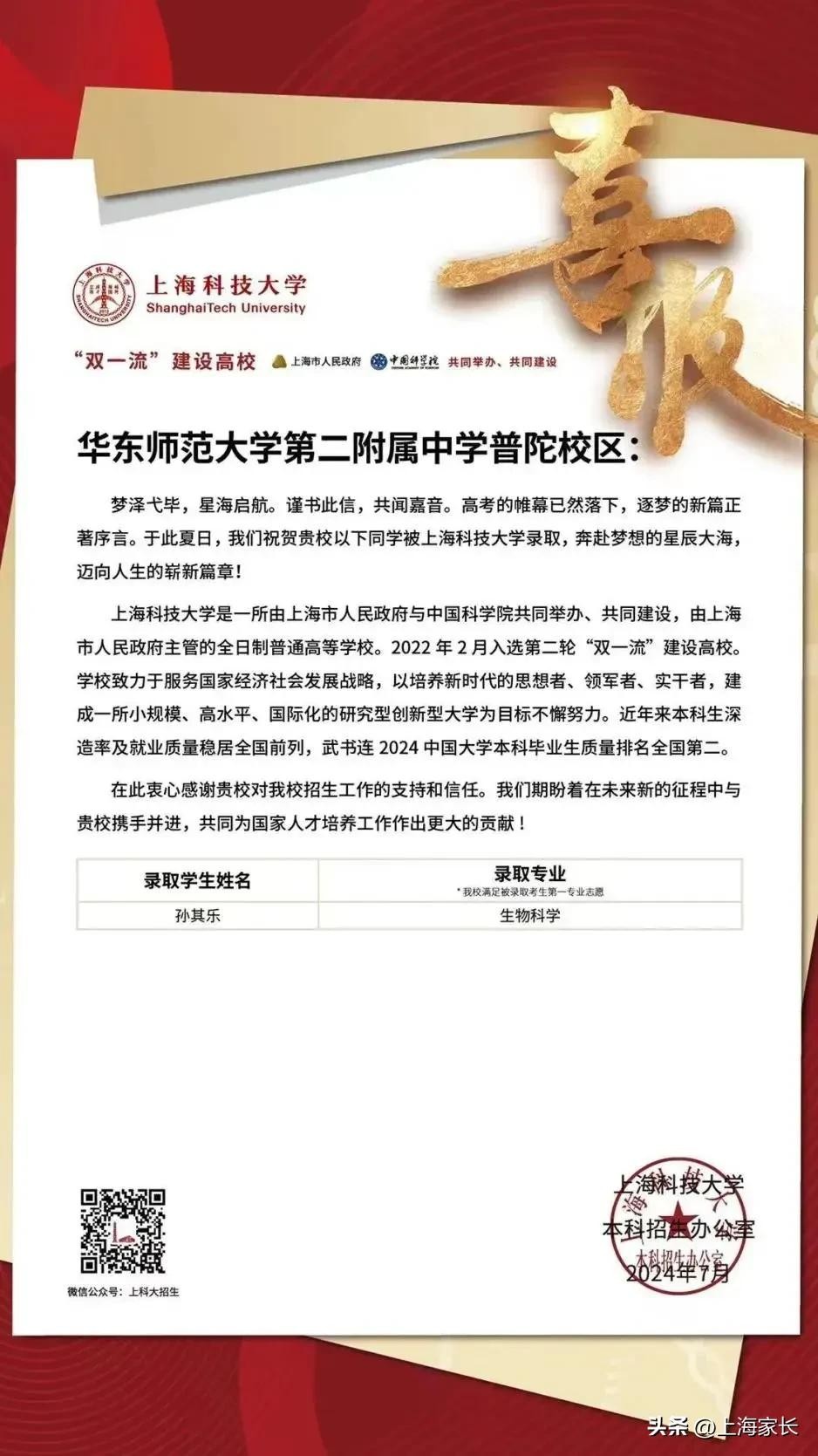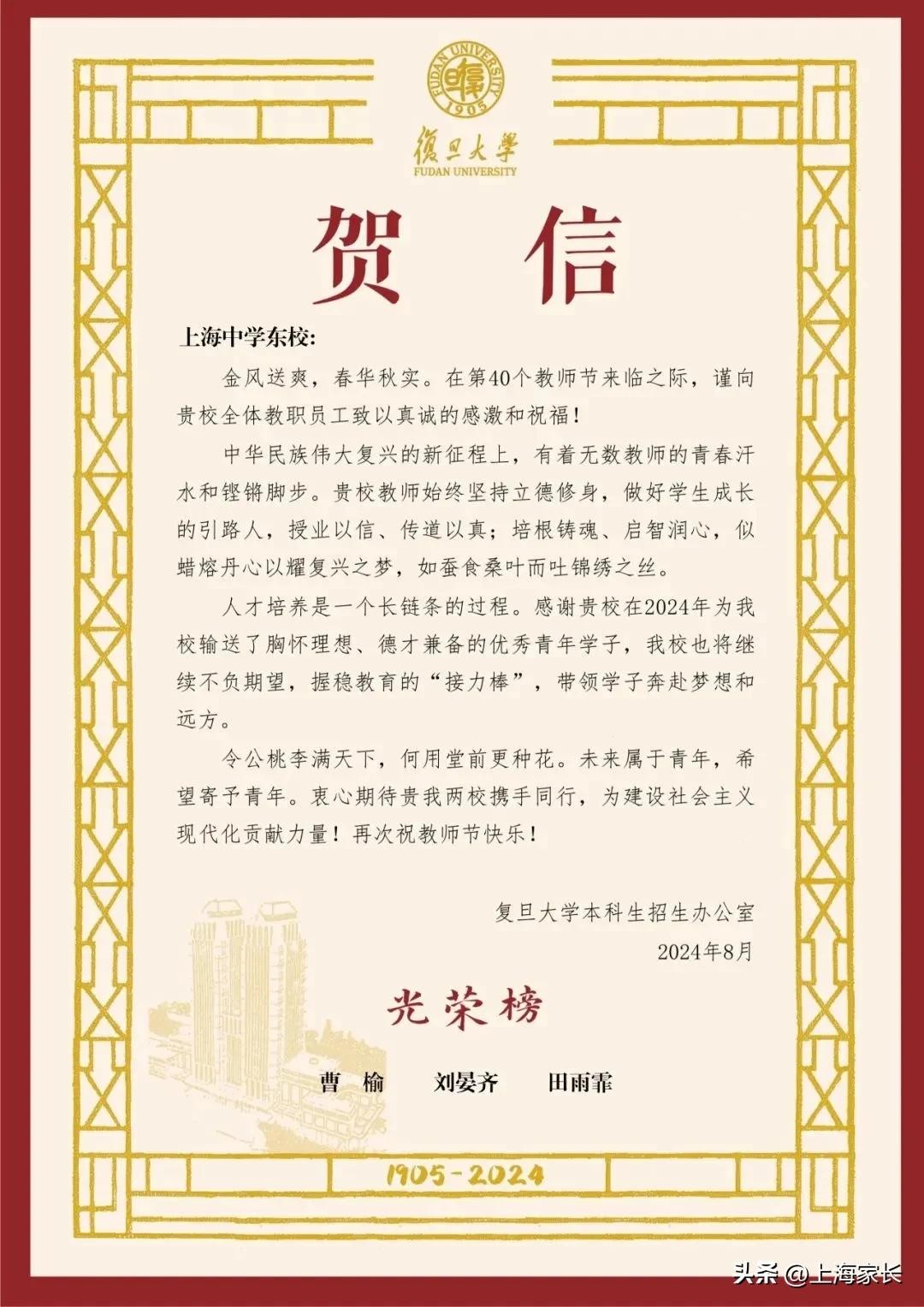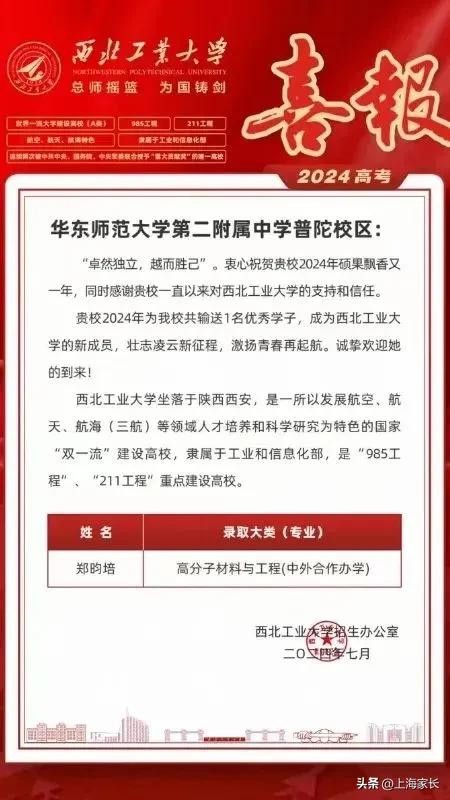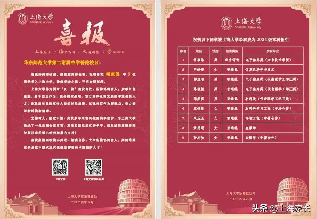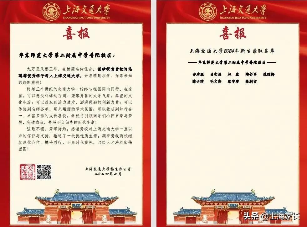 上交大、复旦、上大等5所高校,向华二普陀、上中东发出喜报!