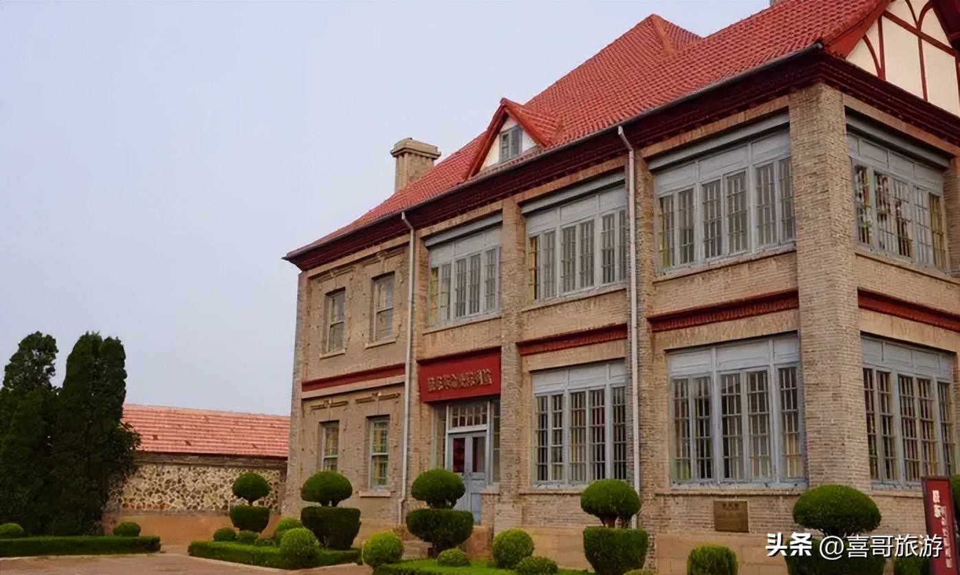 胶东革命史陈列馆,为德式楼,建于19世纪末,上下两层,还带一层阁楼,四坡红瓦屋顶,整栋建筑的山墙都设计了阔大的玻璃窗,但是玻璃窗里面又安装了细密的铁栅栏,确实很特别。该馆展览包括20世纪初的烟台、星火燎原、抗日怒潮、胜利凯歌等四个部分,通过具有代表性实物和大量珍贵历史图片,全面展示烟台自辛亥革命至烟台解放的历史发展进程,再现了那段如火如荼的峥嵘岁月。