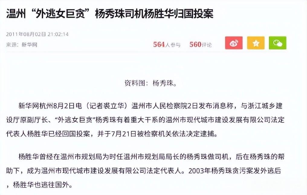 新华网(温州“外逃女巨贪”杨秀珠司机杨胜华归国投案 2011.08.02)