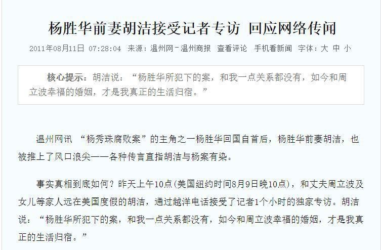 一直到2010年胡洁才终于摆脱了杨胜华。