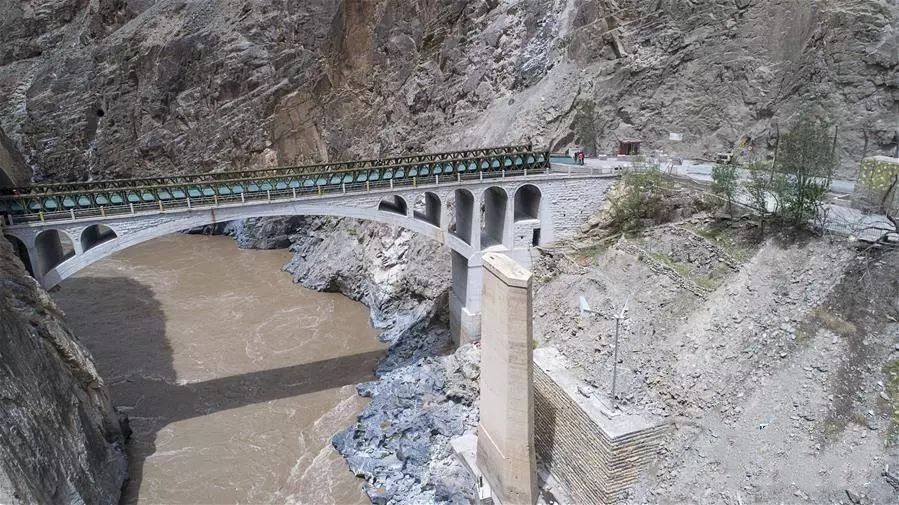 这是1999年8月21日无人机拍摄的怒江大桥旁的桥墩(新华社记者熊琦摄)