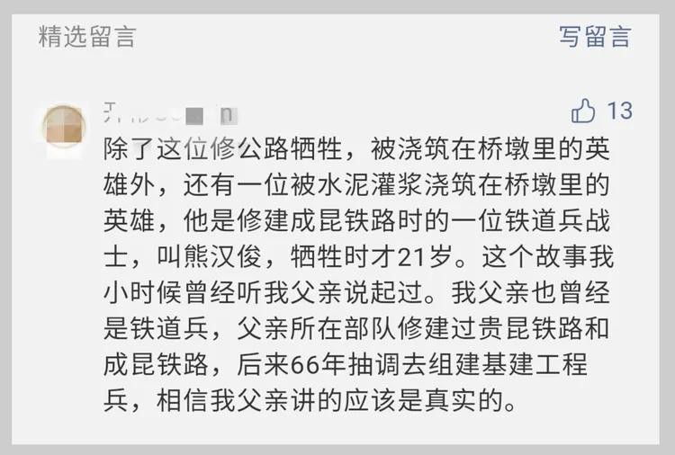 值得一提的是有关刘纪春的传说,他“不慎掉进10多米高、正在灌注水泥的桥墩里”。不知当年工兵团是怎么浇灌桥墩?笔者对此不好评说。根据铁道兵的桥墩施工情况,那年代缺乏现代机械,设备简陋。桥墩施工,只能两米一节两米一节地往上浇灌混凝土。要等两米墩身混凝土凝固了,才能拆模,再往上立两米的模板继续浇筑。桥梁施工的混凝土都是在现场手推车运砂石水泥,再用小拌合机搅拌的。受施工现场和条件所限,一次不可能浇灌混凝土太多。混凝土都是碎石沙子组成的“硬件”,即使人掉下去,最多也就会陷下去三五十公分,不可能将一个人埋进去。