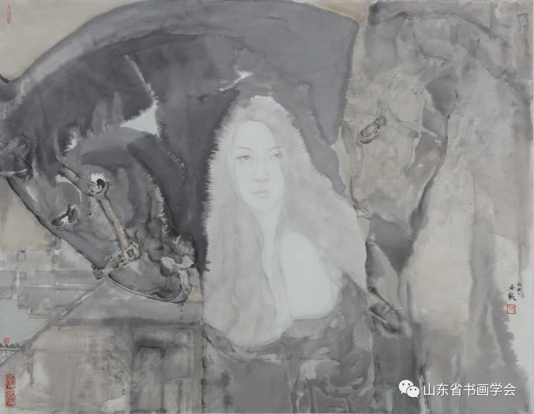 孙春龙肖像画,是从人性静美的角度出发来做水墨唯美探索的。作品从形式上与内容上结合的巧妙,有当代人文文化审美的架构。他的唯美追求并不只是为了美,而是在其中思考了美的过程与美的因因之踪,譬如传统审美强调的“意境”之种种考虑——笔墨、词韵、诗境的呈现。这不但表现了孙春龙对美的现实追求,也表达了他对人文精神的关照,当下的悦目与理念的赏心。