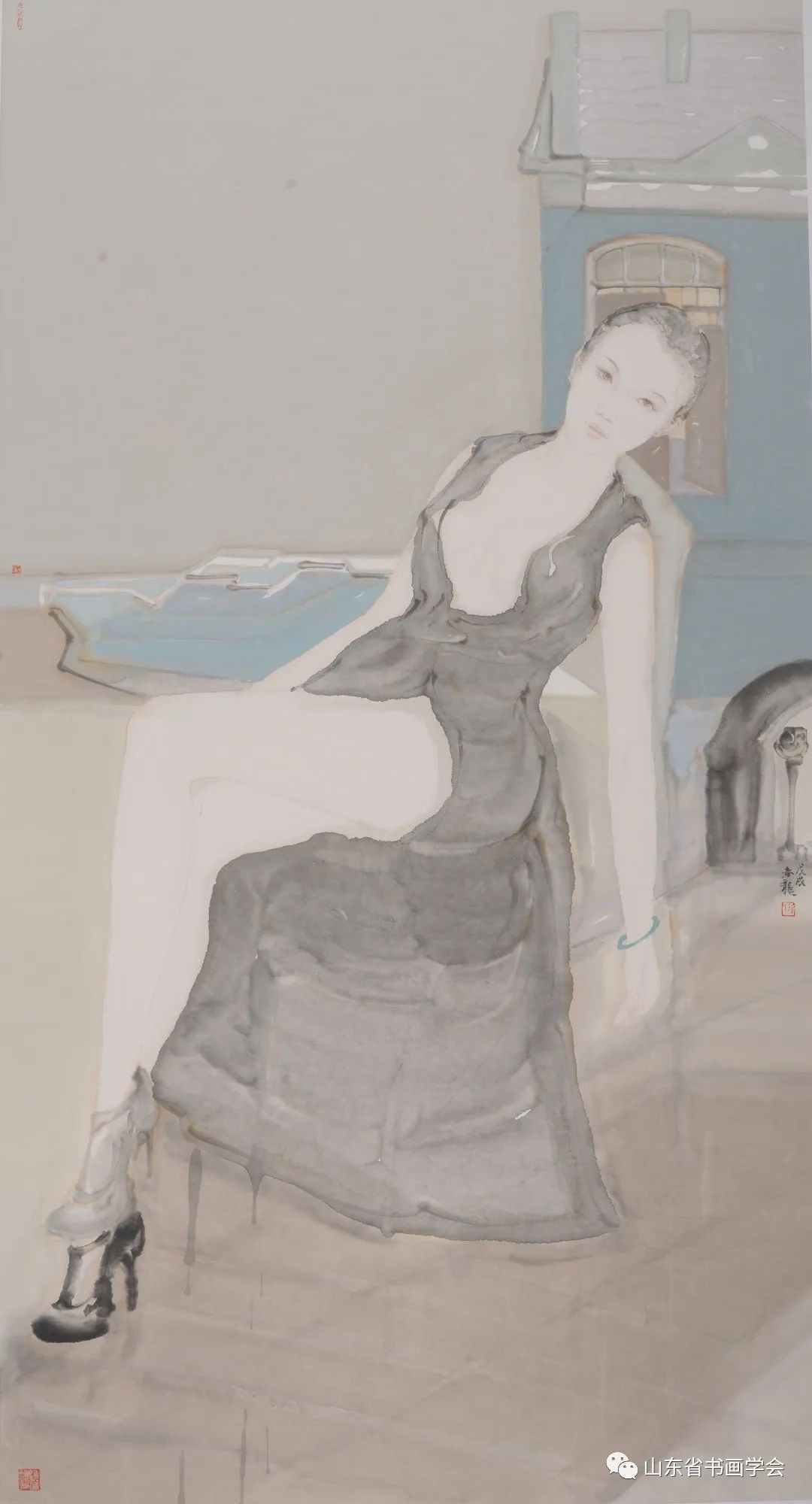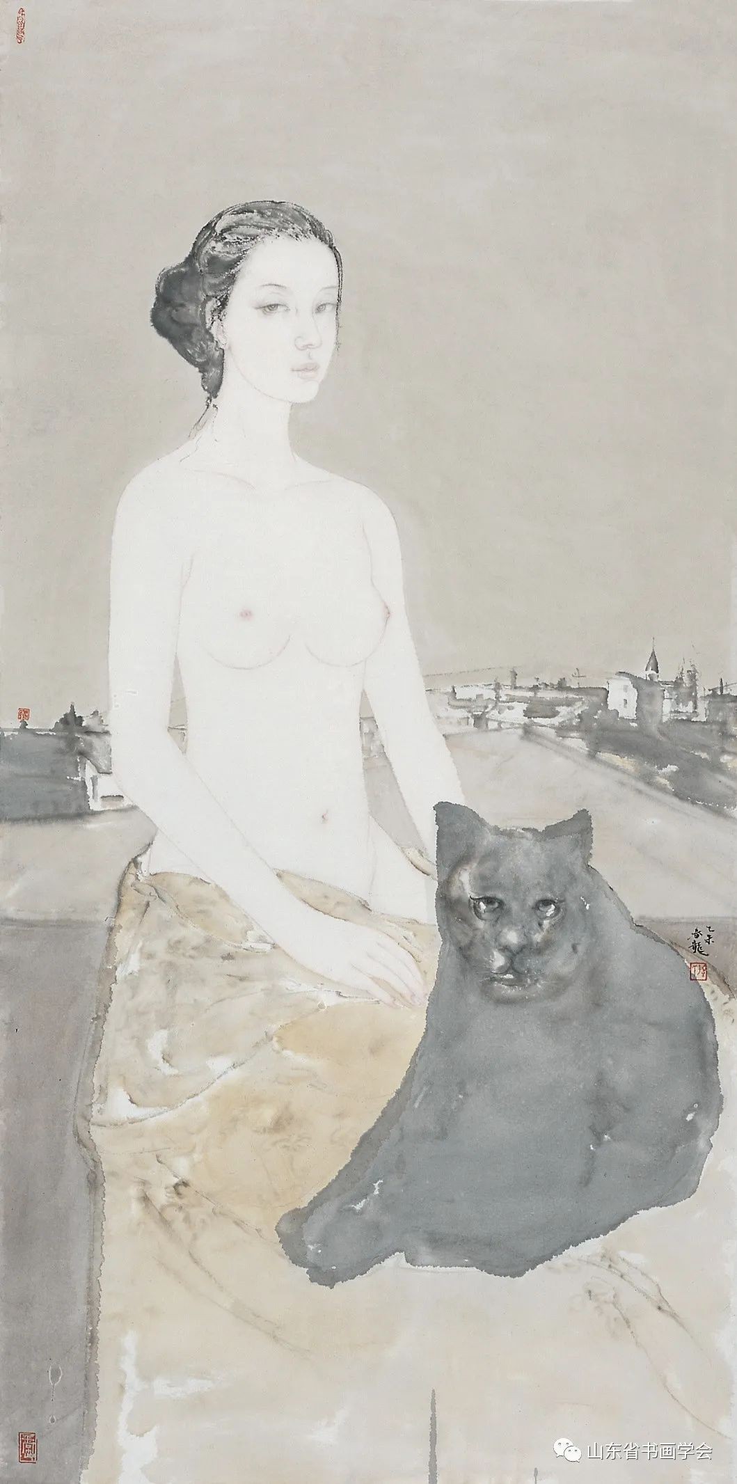 当下人们往往在寻求现代艺术语言的时候,常常掉进一种审丑的窘地,尤其是一些所谓的“新文人画”的出发,颠倒了古人的情节,将苍白的形而下图式,释读为形而上的当代文人思想。尤其是那些对女性美弱化为墨色苦涩、线条干瘪的表现,更或者是丑化,首先心象立不住,不温润,真气不存——簌簌摇落如枯叶;更致命的是没有了审美原则和文化底线的那样一些当初在大谈回到文人境界的高声者,现在来看,实际的是连羸弱的喘息都够不到的伸张连自己都莫名其妙。