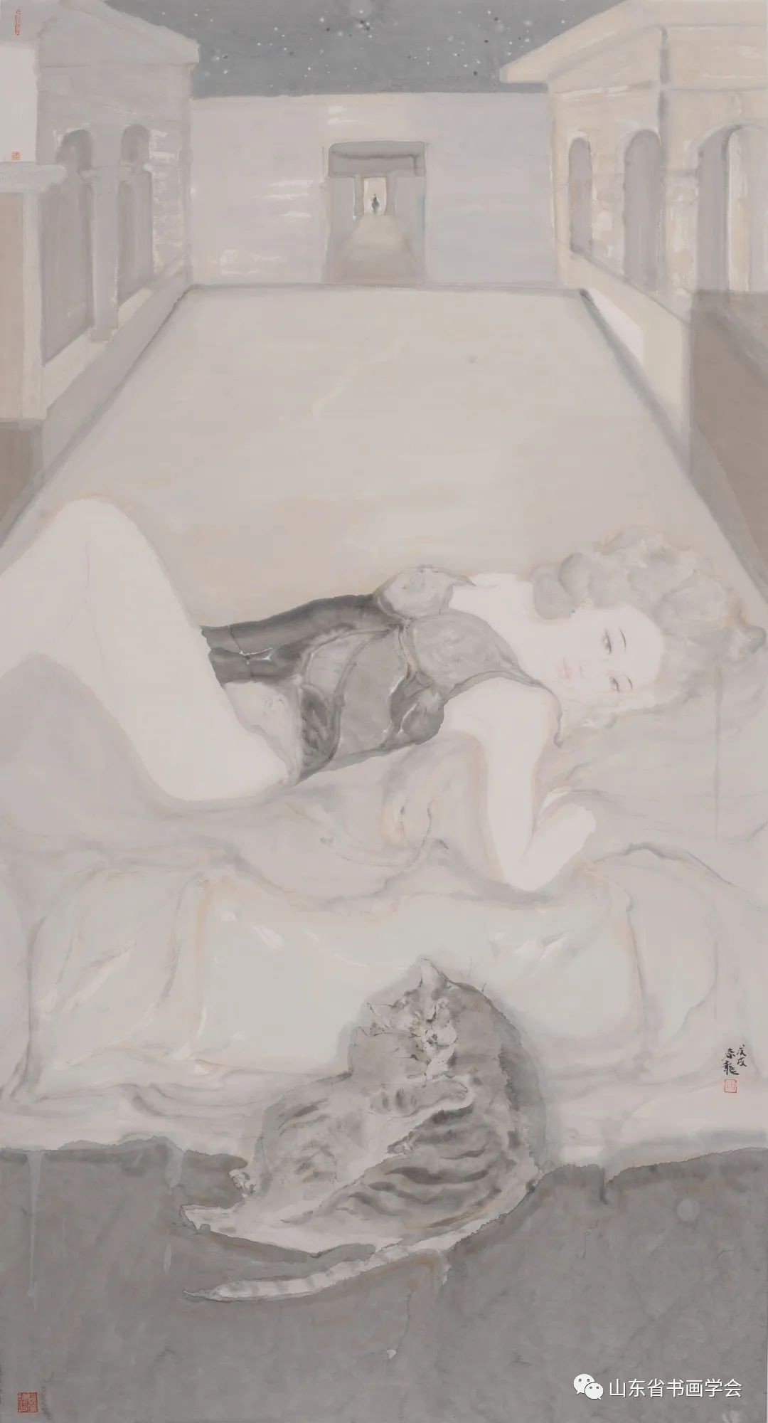 孙春龙的绘画在笔法上表现细腻,画面里充满着中和之韵。他在作品中讲究美感,更强调美的心灵意义,与时下流行的“唯美”画风截然不同。他之所以出类拔萃,很重要的一点就是他的画不但脱俗,其美更不庸常,美得自然。