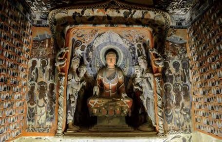 中国画就是黑白的文人水墨画吗?在敦煌,莫高窟的千年壁画告诉 我们,色彩的运用,在中国绘画传统中曾经是绝对的主流。延续一千多 年的色彩斑斓的壁画,让莫高窟成为名副其实的“沙漠中的美术馆”, 为我们保存了珍贵的中国传统绘画记忆。敦煌莫高窟,俗称千佛洞,坐落在河西走廊西端的敦煌。敦煌 莫高窟是世界上现存规模最大、内容最丰富的艺术圣地。它跨越了 一千六百五十三年的历史风云、汇集十个朝代的匠人智慧,共绘制壁画 五万多平方米。这里独特的壁画艺术,吸引着一代又一代画家研究、临摹。