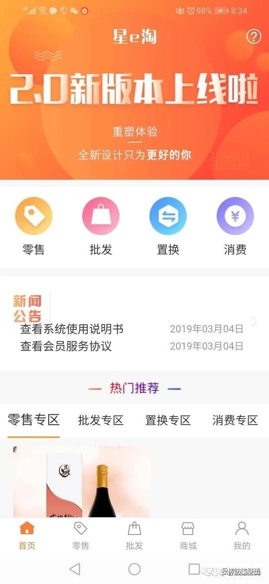 据悉,中君的新零售商城主体是一个叫做星e淘的app,里面包括零售区、批发区、置换区、消费区,消费者通过绑卡可以在app上进行各项消费操作。