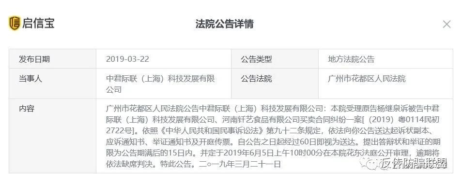 这样一家劣迹斑斑的公司在今年3月22日,终是把合作伙伴中君拉下了水,让罗永亮也和它共同成为了一桩买卖合同纠纷案的被告。