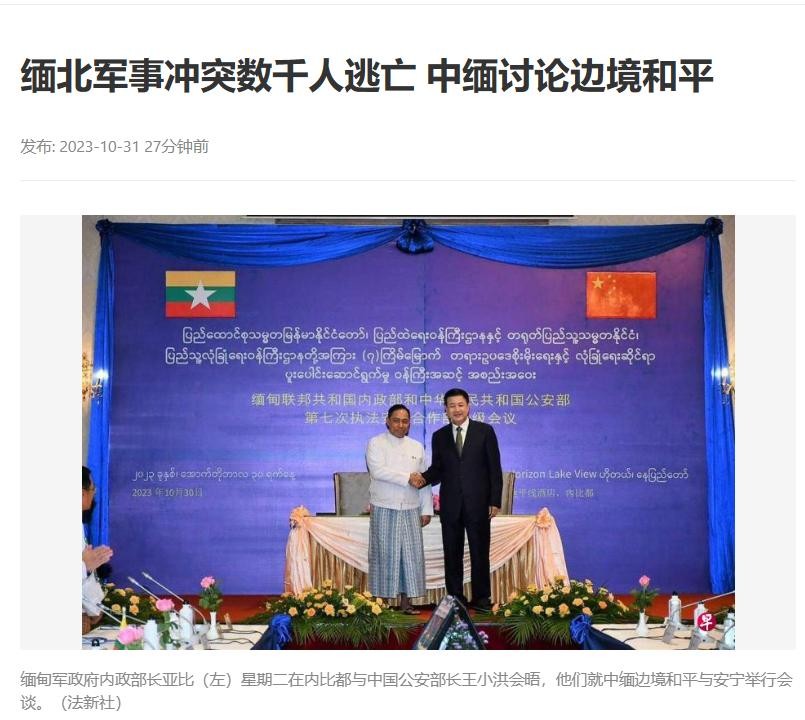 为了与缅方商讨稳定局势,中国公安部长紧急赴内比都与缅甸军政府内政部长会晤,就中缅边境和平与安宁举行会谈。