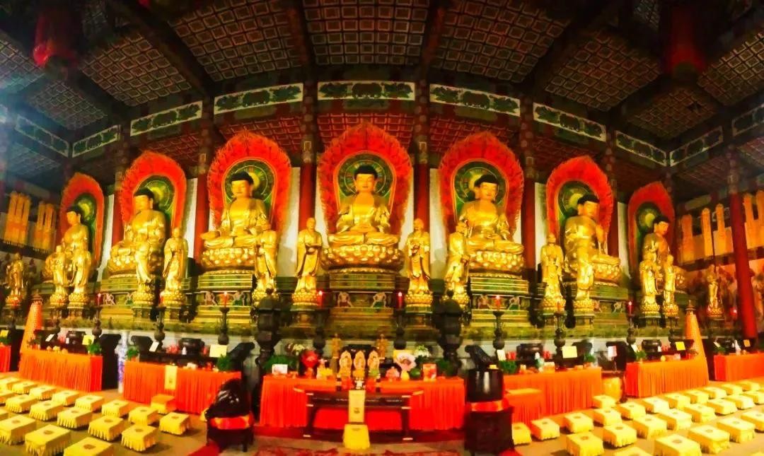 一是七佛殿(七佛:是指毗婆尸佛、尸弃佛、毗舍婆佛、拘楼孙佛、拘那含佛、迦叶佛、释迦牟尼佛)是国内最大的大雄宝殿,建筑面积2377平方米;