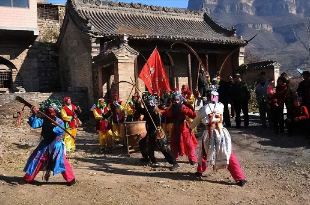 当民间武术和庙会相遇,便诞生了具有表演性质的社火。以传统戏曲中的武打故事为内容的马上社火,在南冶村也叫脸子会。