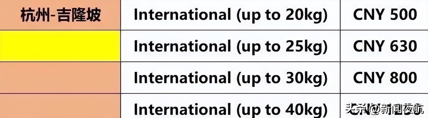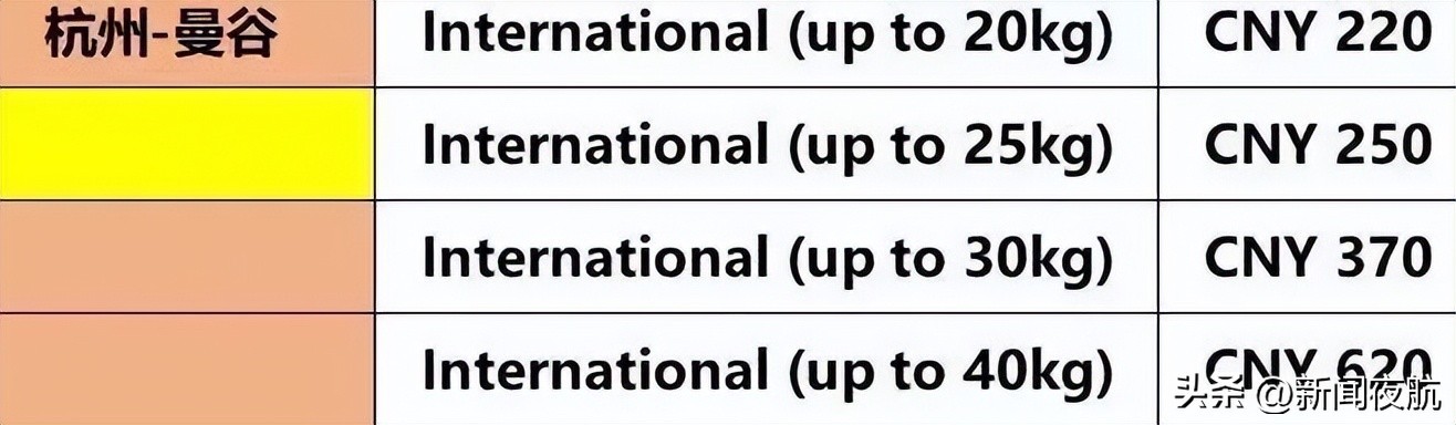 记者找了另外一家卖家,询问国际航班行李托运价格,不同的国际航线托运价格都不一样。以亚洲航空为例,杭州直飞曼谷,行李20公斤以内托运价格为220元,25公斤以内托运价格为250元。如果是杭州飞吉隆坡,20公斤以内托运价格为500元,25公斤以内为630元。两条航线托运行李不限件数。